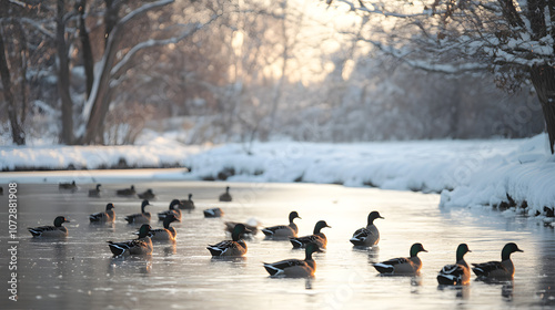 © GoldPumaze, Fototapeta premium Investigating the effects of changing winter conditions on wildlife migration patterns.