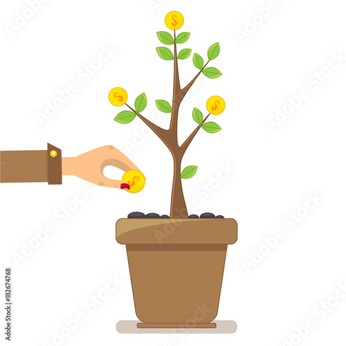 © Kova Studio, Fototapeta premium Investment growth concept, hand holding golden coin and small money tree.