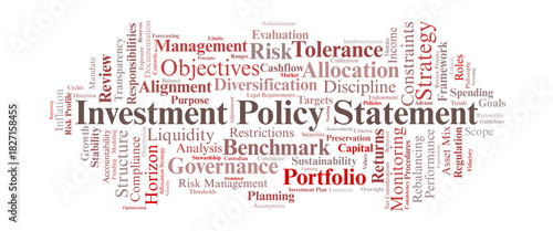 © Danawan Purbanggoro, Obraz premium Investment Policy Statement Word Cloud. Core Concepts in Portfolio Governance and Strategy