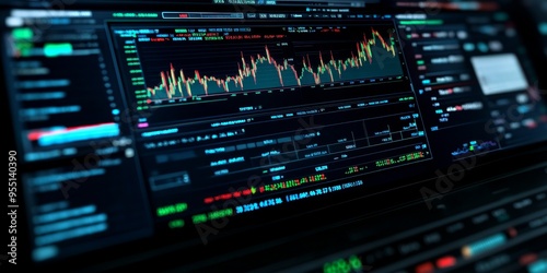 © kwanchaift, Obraz premium Investor managing a diversified portfolio with detailed visualizations of performance and risk professional interface