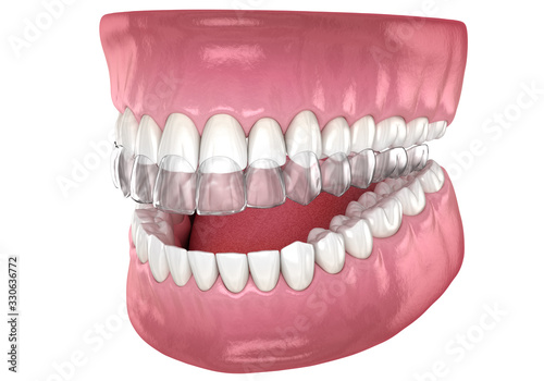 © Alex Mit, Fototapeta premium Invisalign braces or invisible retainer. Medically accurate dental 3D illustration