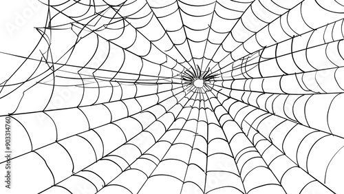 Obraz premium Invisible Weaver: Realistic Cartoon Line Art of a Tangled Web