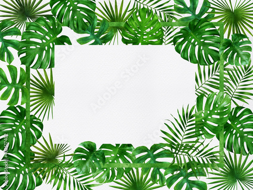 Fototapeta premium invitation card design, water color of tropical leaves