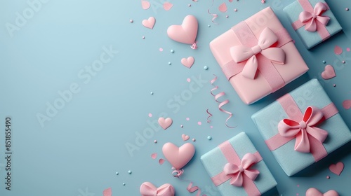 © apichat, Fototapeta premium Invitation Template flat design top view wedding celebration theme 3D Splitcomplementary color scheme