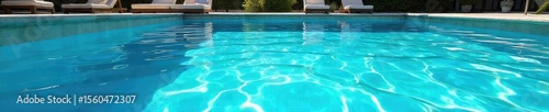 Obraz premium Inviting blue swimming pool shimmering under sunlight, perfect for summer...