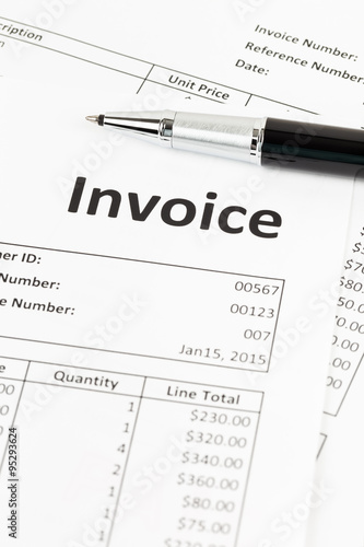 Fototapeta premium Invoice with pen; invoice is mock-up