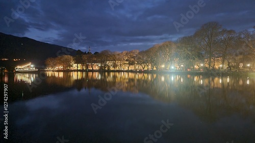 © sea and sun, Obraz premium ioannina night in the lake winter afternoon greece