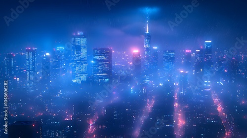 © Warakorn, Fototapeta premium IoT devices communicating through long-range networks, seamless data connections, urban landscape with digital technology overlays