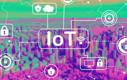 Fototapeta premium IoT security theme with aerial view of central park and midtown Manhattan