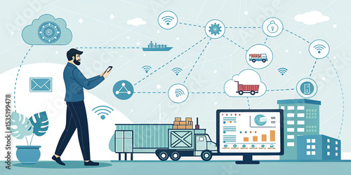 Fototapeta premium IoT Solutions: A Businessman's Insight into Smart Technology