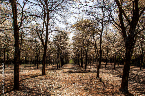 © AlfRibeiro, Naklejka premium Ipes white tree flowering grove with selective focus in the municipality of Marilia