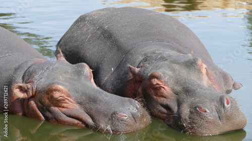 © Franxuc, Fototapeta premium Ippopotami che dormono in acqua