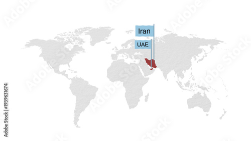 © @5pixel, Fototapeta premium Iran and UAE map highlighted on world map 0102 digital illustration graphic visual image suitable for design projects presentations marketing material