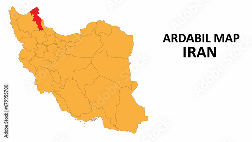 Naklejka premium Iran Map. Ardabil Map Map highlighted on the Iran map with detailed state and...