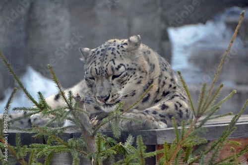 © Дина Попова, Fototapeta premium Irbis looks at the tree