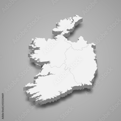 © magr80, Obraz premium Ireland 3d map with borders Template for your design