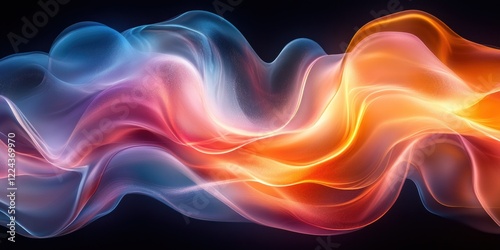 © btiger, Obraz premium Iridescent Abstract Wave Design on Black Background Fluid Movement 3D Render