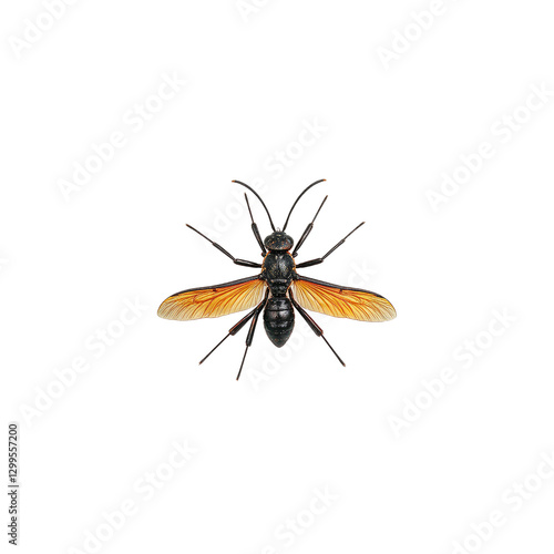 © GMeta, Fototapeta premium Iridescent black tarantula hawk wasp with bright orange wings on white background