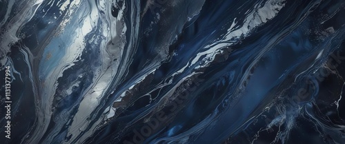 Obraz premium Iridescent blue and silver marble texture with subtle shimmer on a dark blue...