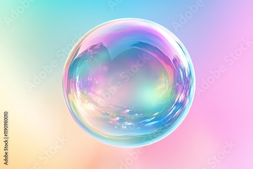 Obraz premium Iridescent Bubble Digital Art, Pastel Sphere, Abstract Concept, Bubble...