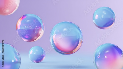 Obraz premium Iridescent bubbles floating in a dreamy purple and blue gradient background