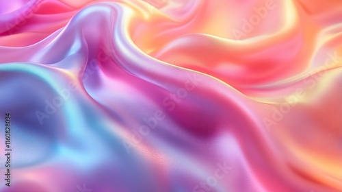 Obraz premium Iridescent fabric flows in waves, creating a vibrant and holographic backdrop for design or art