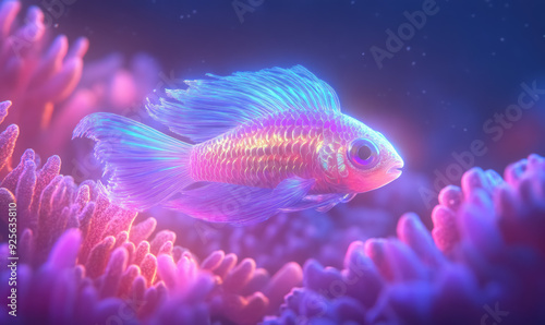 Fototapeta premium iridescent fish swimming in vibrant coral reef environment