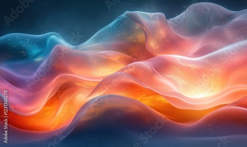 Fototapeta premium Iridescent Flowing Curves Abstract Landscape 3D Render Fluid Art