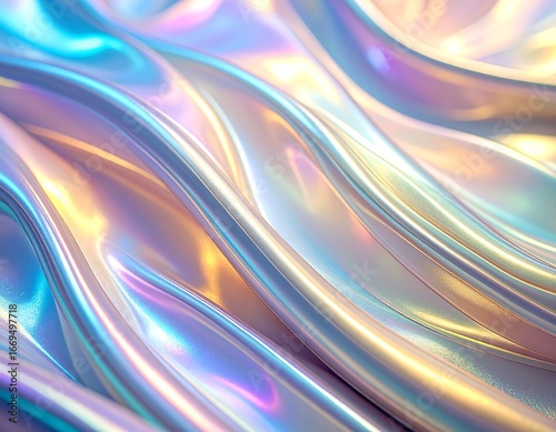 Naklejka premium Iridescent, flowing fabric with pastel hues and smooth, undulating waves