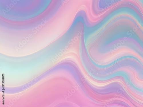 Obraz premium Iridescent Fluid Abstract – Holographic Waves, Pastel Colors, and Dreamy Gradient Glow