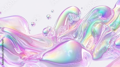 Fototapeta premium Iridescent Fluid Shapes with Bubbles in Soft Pastel Colors