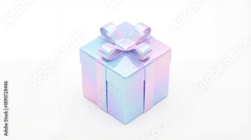 Obraz premium Iridescent Gift Box with Bow on White Background.