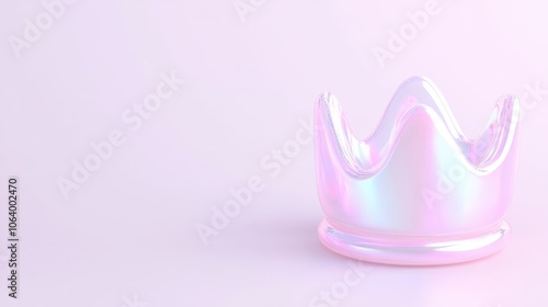 © Yulia, Obraz premium Iridescent glass crown on pastel pink background for modern design aesthetics