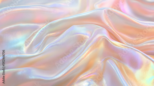 © Yelena, Fototapeta premium Iridescent Holographic Background a pastel khaki to apricot gradient