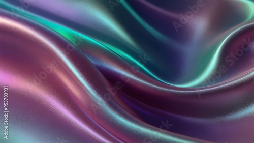 © Maryna Andriianova, Obraz premium Iridescent holographic fabric flowing cloth background texture