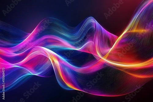 Obraz premium Iridescent holographic neon wave designs blending fluidly for a futuristic 3D...