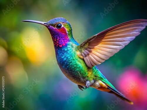 © Man888, Obraz premium Iridescent Hummingbird in Flight, Jewel-toned Feathers, Nature Photography
