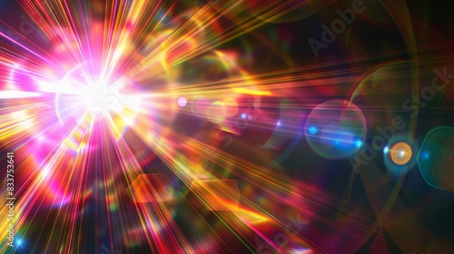 Obraz premium iridescent lens flare and sun burst effects on black background abstract digital illustration