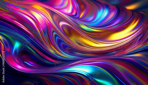 © parintorn, Obraz premium Iridescent Liquid Chrome Waves Abstract Wallpaper