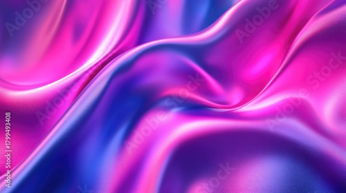 © vectorwin, Obraz premium Iridescent liquid fabric flowing with vibrant pink and blue colors