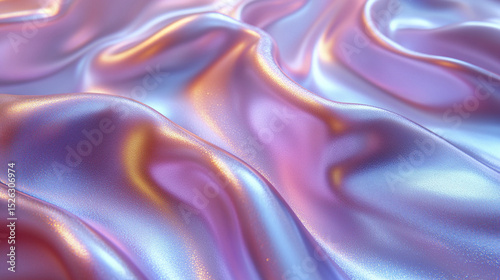 © Thanthara, Obraz premium Iridescent liquid texture with flowing metallic surface in soft pastel colors