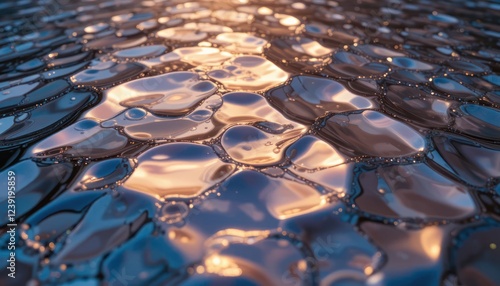 © Anus, Fototapeta premium "Iridescent oil patterns on water, reflecting rainbow hues under soft light."