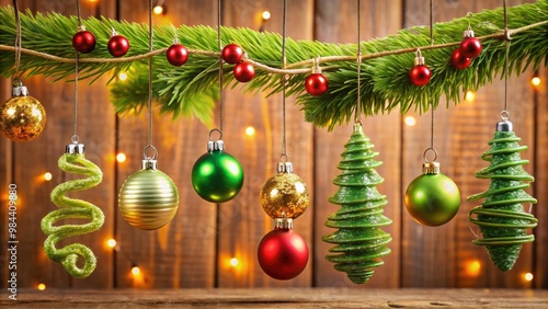 © Autun, Fototapeta premium Iridescent ornaments are suspended from a whimsical worm-shaped wire tree, adding a touch of playfulness to the holiday decor.