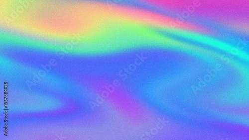 © Maksim, Obraz premium Iridescent Pastel Wave Pattern in Neon Blue, Pink, Yellow, Retro Y2K Aesthetic