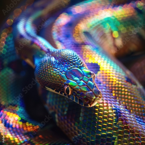 © JHONDOMINIC, Fototapeta premium Iridescent Patterns of Artistry in a Colorful Snake's Scales