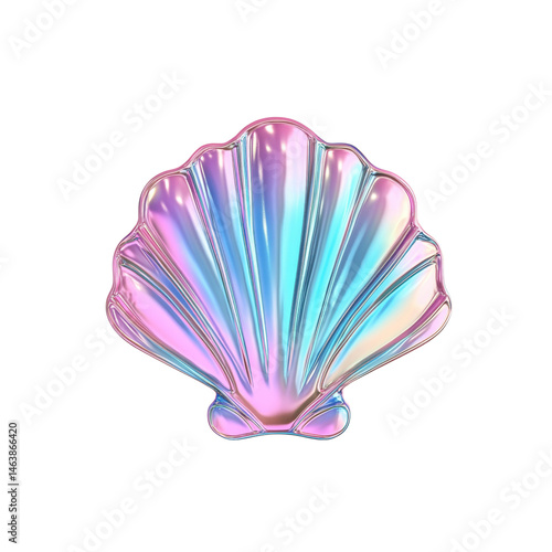 © Hunh, Fototapeta premium Iridescent Pearl Shell A 3D Render of a Shimmering Seashell