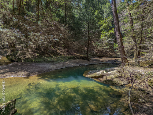 © gregmrotek, Obraz premium Iridescent Pool Surrounded by Pine Trees
