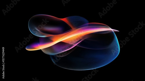Fototapeta premium Iridescent Pulse, a vibrant, abstract shape radiating color in a darkened environment, evoking a sense of movement and energy.