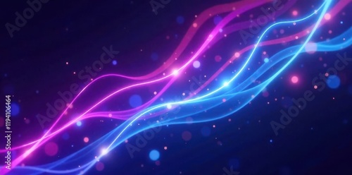 Fototapeta premium Iridescent purple and blue light streaks against a dark background, blur,...