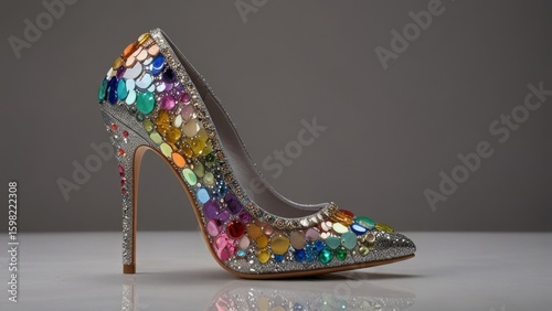 © Chaotic Fan, Obraz premium Iridescent Rainbow Opal Stilettos with Dazzling Crystal Embellishments